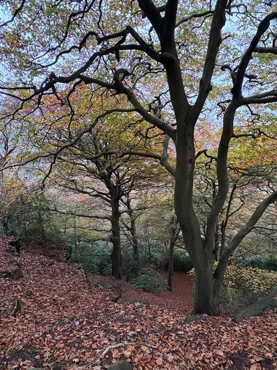 Starting from Beacon Hill car park, we head SE down the lane before turning N round Beacon Hill towards Overton. The route then goes round the cliff-top war memorial, remaining on the top of the cliffs until we descend to the lower path heading SW towards Foxhill, where we skirt the Arboretum and join another lane SE round the base of the hill. We turn N towards Woodhouse Hill, skirting the site of the hill fort there, and follow the path to the common and back to Beacon Hill.