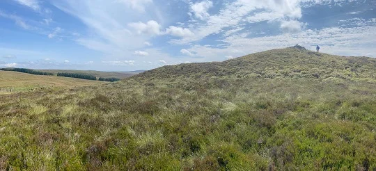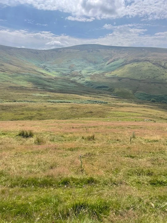 From the car park in Llandrillo, we climb NE on lanes to join the bridleway to the summit as the route turns gradually SE towards the pass between the Dee and Ceiriog valleys, near Careg-y-Caws.